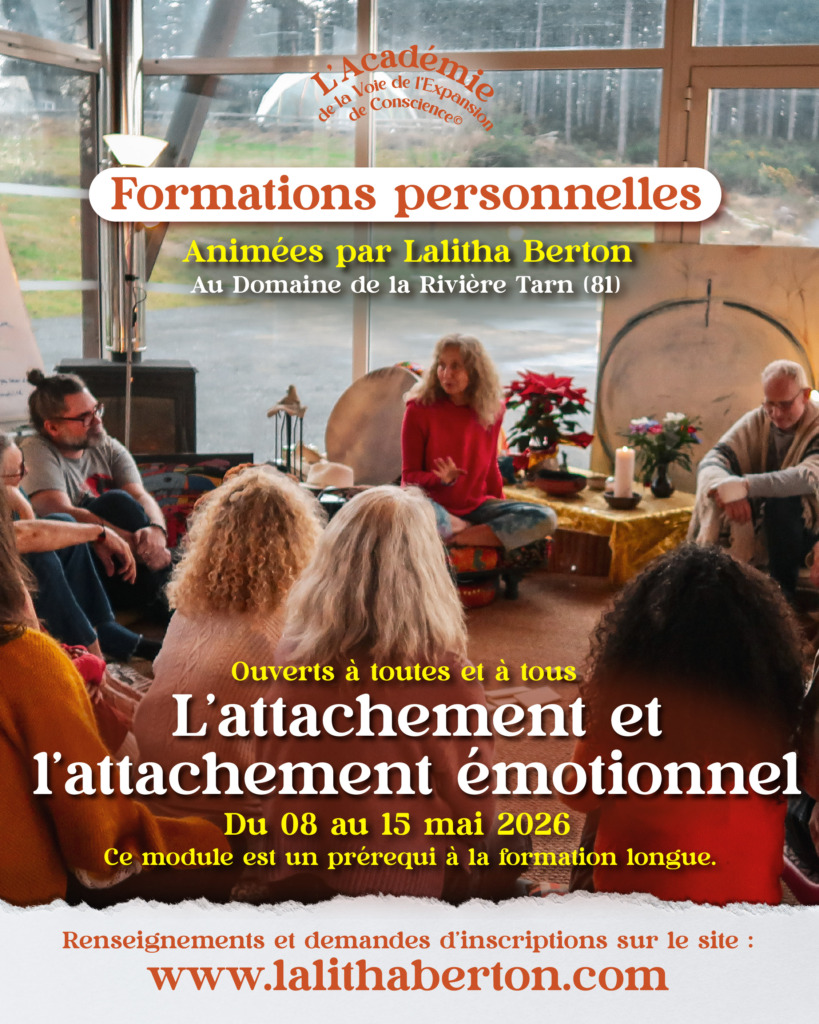 Explorez lors de la formation personnelle, L’attachement et l’attachement émotionnel du 08 au 15 mai 2026,
